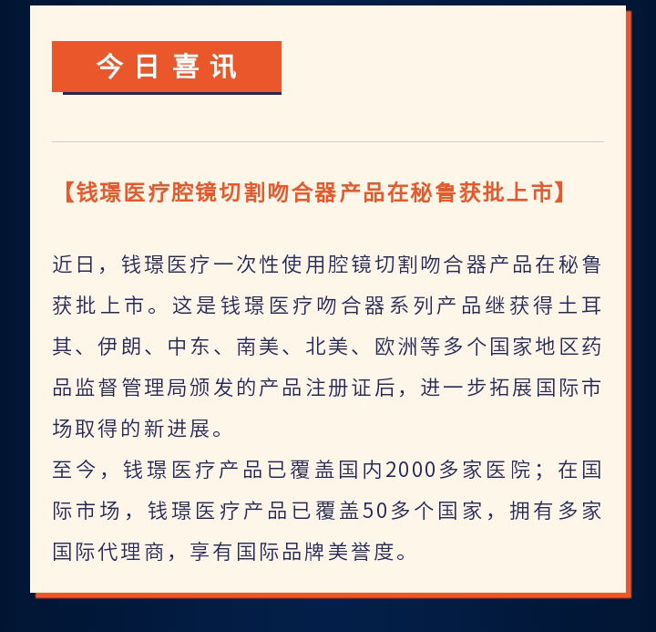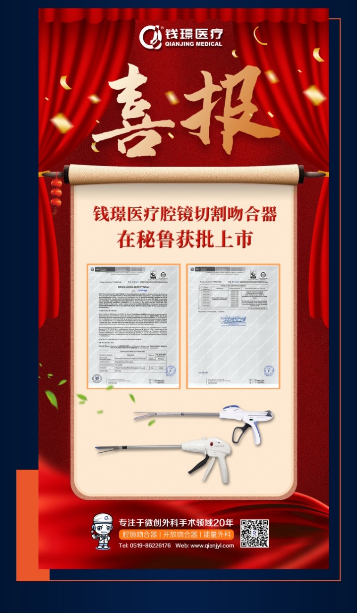 喜訊 | 錢璟醫(yī)療腔鏡切割吻合器產(chǎn)品在秘魯獲批上市